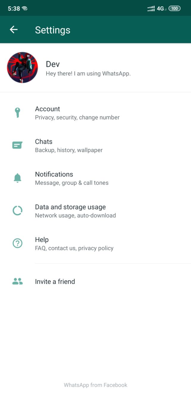 WhatsApp profile in: